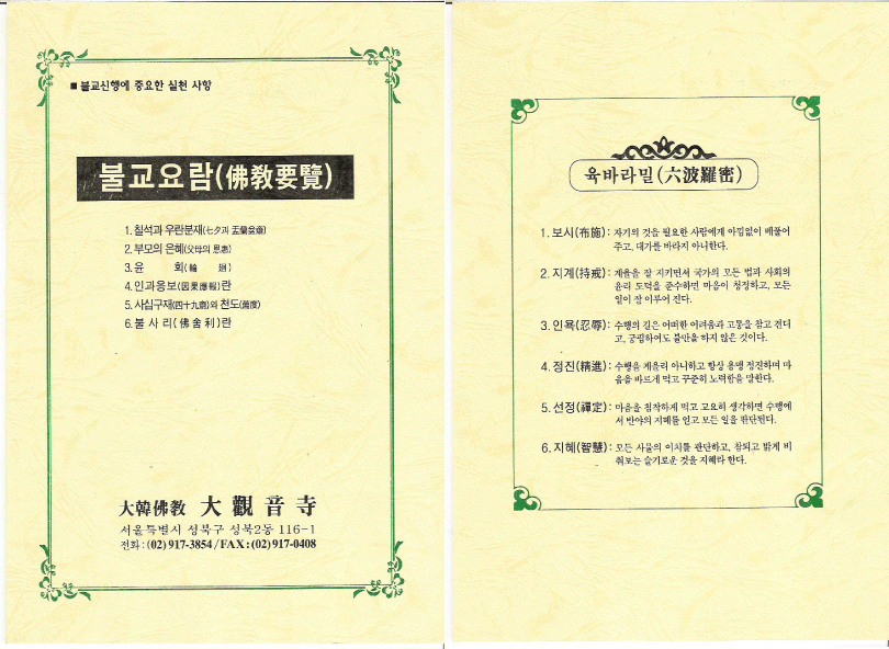 불교요람(佛敎要覽) 관음사 2017-05-01 20:19 출판서적소개 690 0 0 불교요람(佛敎要覽) 관음사님의 프로필 목록 게시물 비밀번호를 입력해주세요. 답글 남기기 응답 취소댓글을 달기 위해서는 로그인해야합니다. 제목+내용 제목 작성자 희망과 삶의 지름길로 가는 부처님 말씀 관음사 12/26 1322 0 0 내영혼의 안식처-지장기도 천도재 cd 관음사 05/03 1397 0 0 불교 교양입문 관음사 05/03 1318 0 0 五百羅漢聖號와靑少年敎養集 관음사 05/01 1267 0 0 불교요람(佛敎要覽) 관음사 05/01 690 0 0 우리곁에 지장보살오셨네!(2003년 5월) 관음사 05/01 549 0 0 오!지장보살님이시여 나는 언제나 지옥문을 두드리나이까? (2002년 5월) 관음사 04/30 689 0 0 지금은 지장보살시대(2000년 8월) 관음사 04/30 474 0 0 불교교리 및 상식해설(1993년 8월) 관음사 04/30 594 0 0 글쓰기